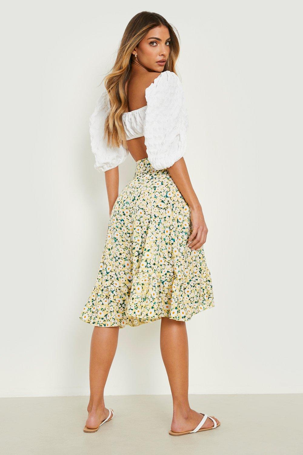 Gonna midi a incrocio con margherite e volant boohoo IT Very well made.