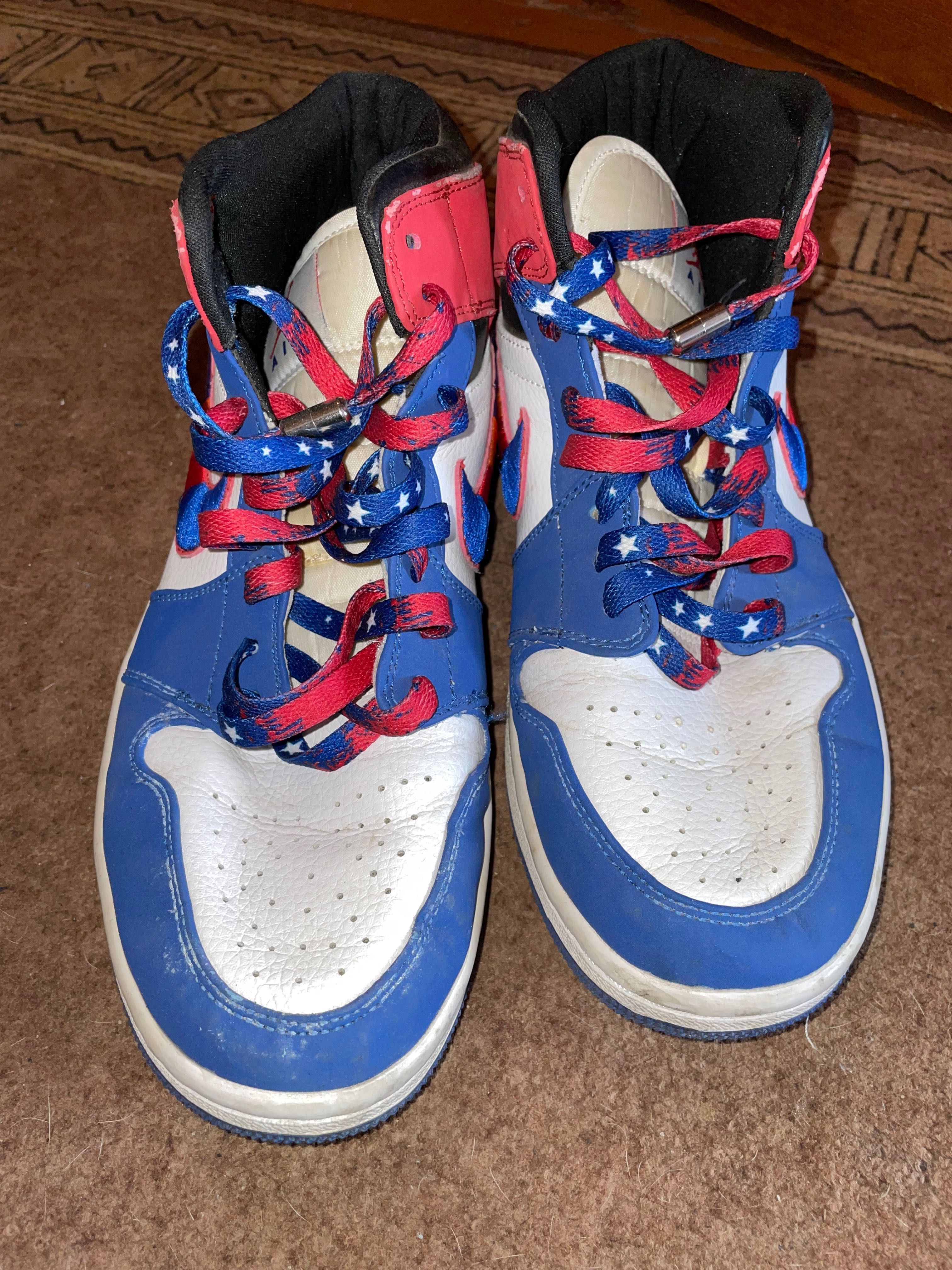 Size 11.0 Air Jordan 1 Mid Multicolor Swoosh Black Very well made.