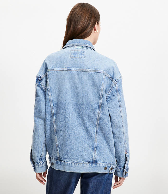 Petite Oversized Denim Trucker Jacket in Light Wash Indigo Very well made.