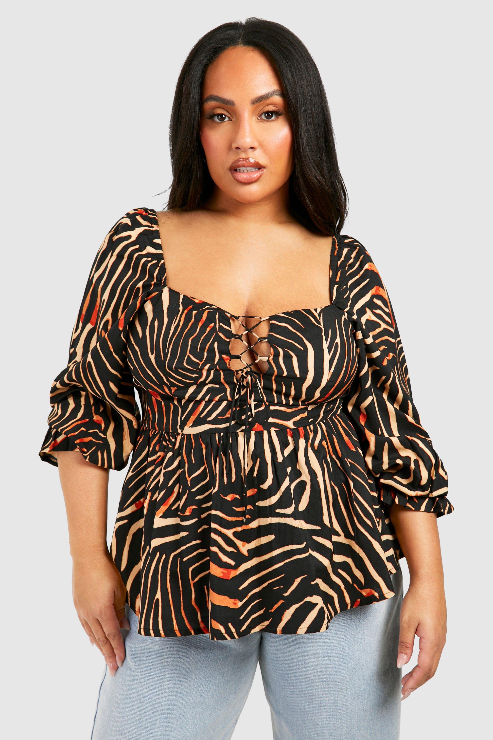 Plus Lace Up Animal Print Smock Top boohoo IE Very well made.