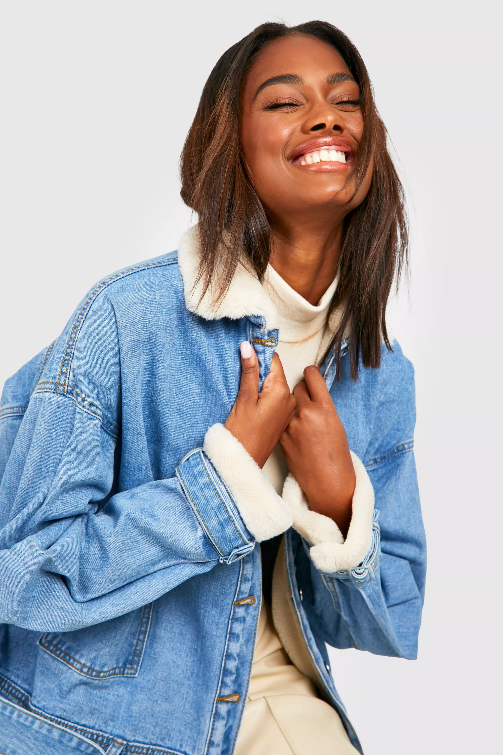 Teddy Buckle Detail Oversized Denim Jacket Very well made.